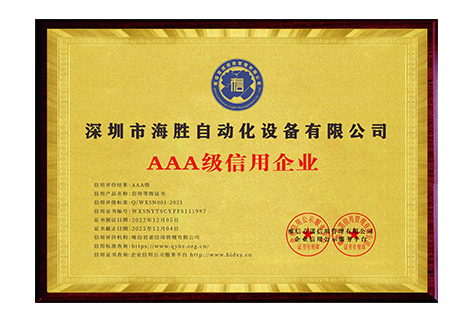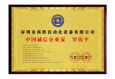 海勝秉承“海納百川,誠信致勝”的品牌經(jīng)營理念,致力于線束自動化設備的研發(fā)、生產(chǎn)與銷售,目前已取得多項新型專利證書、發(fā)明專利證書,企業(yè)已通過ISO9001質(zhì)量管理體系認證,國家高新技術企業(yè)認證,獲得AAA級信用企業(yè)、全國質(zhì)量信得過單位、中國行業(yè)百強優(yōu)秀企業(yè)等多項獎項。